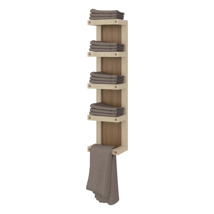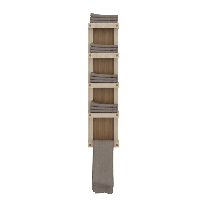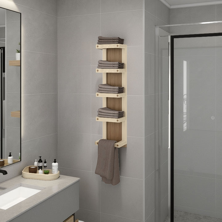 Chandler 5-Tier Wall Towel Rack, Slim Vertical Organizer with Shelves for Bathroom, Space-Saving, Natural Oak