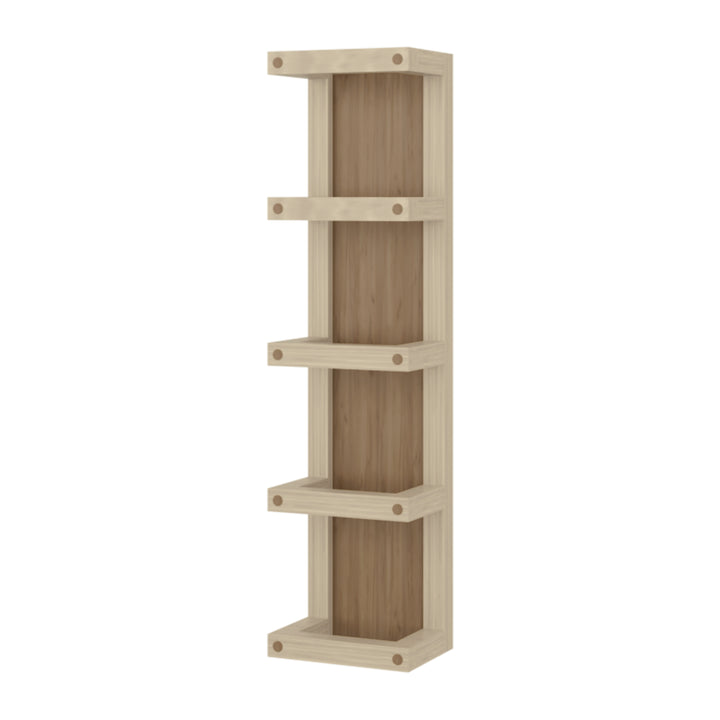 Chandler is a 5-tier wall-mounted towel rack designed to make the most of every inch of vertical space in the bathroom. Its slim design with open cubes keeps rolled towels, bottles, and amenities always within reach, without taking up floor space. Made of high-strength MDP chipboard and melamine, it offers great stability, easy cleaning, and durability for everyday use. Perfect for small bathrooms, laundry rooms, or home spas, its modern aesthetic blends with any style. Organize, decorate, and save space with Chandler.