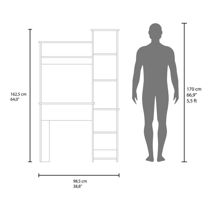 Its vertical structure maximizes storage without taking up much floor space, making it ideal for home offices, study areas, or student bedrooms. With a clean and modern design, this desk combines practical storage, smart organization, and contemporary style to keep your workspace tidy and efficient.