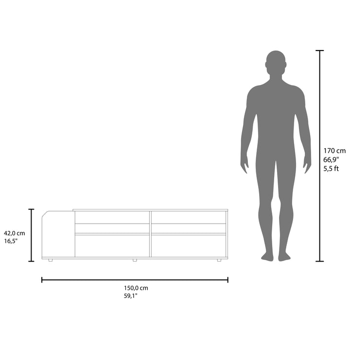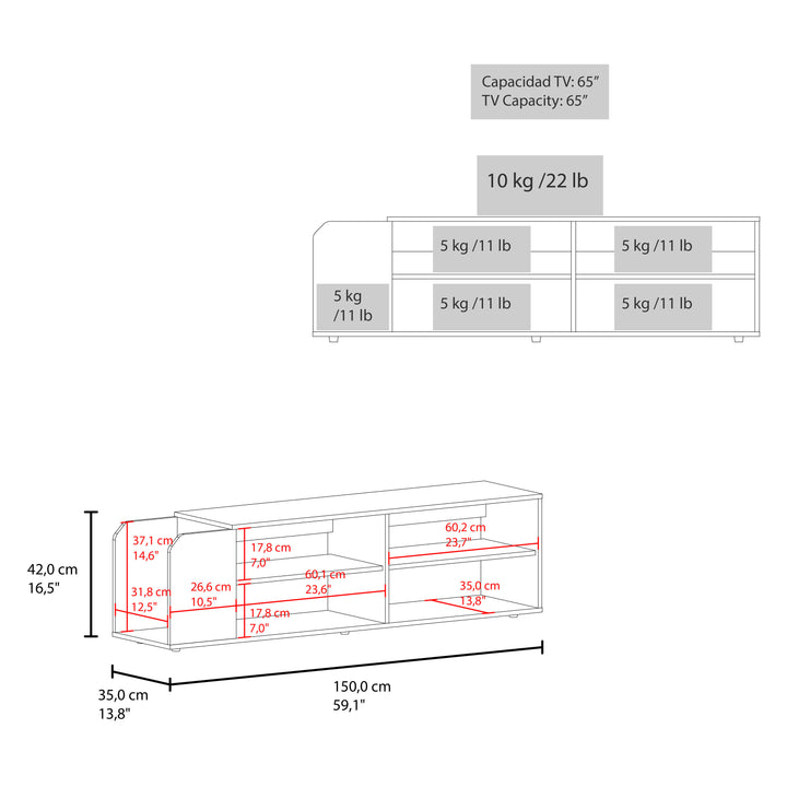 Dimensions: 16.5" (H) x 59.1" (W) x 13.8 (D).