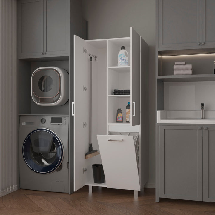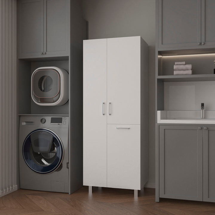 The Mirage Modern Storage Cabinet with 2 Doors, 1 Drawer, and Metal Legs, Perfect for Organizing Bathrooms, Laundry Rooms, and Common Areas, White
